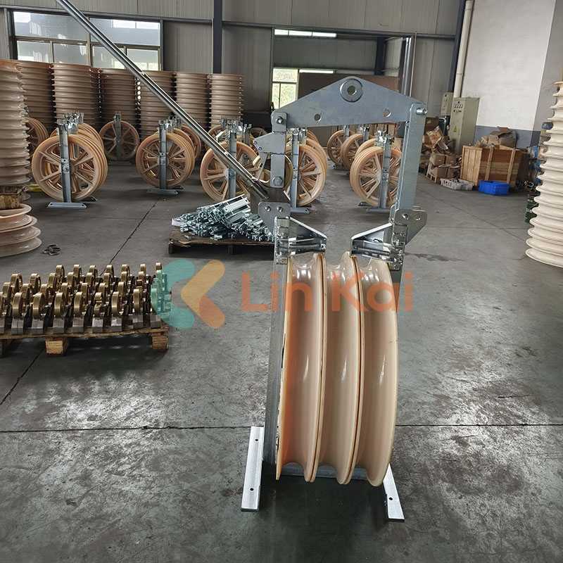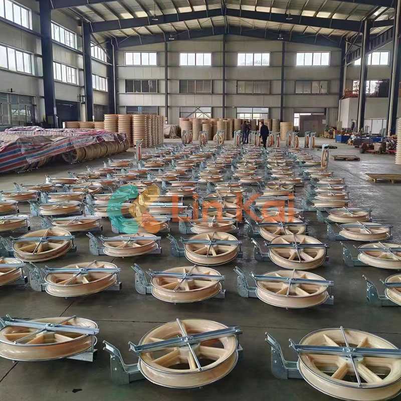 Вертолітні провідники для натягування вертольота на заводі Ningbo Lingkai підходять для натягування пілотного канату. Пілотний трос автоматично розташовується на центральному колесі. Струнними блоками для натягування вертольота можуть бути нейлонові колеса MC великого діаметру 508 мм, 660 мм і 916 мм. Ningbo Lingkai, що займається виробництвом блоків для натягування провідників, може оптом продавати блоки для натягування провідників для вертольотів, як з алюмінієвого сплаву, так і з нейлонового шкива, обидва можуть бути обшиті гумою.